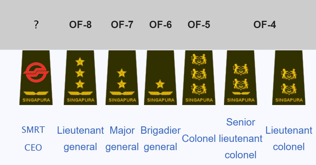 坡坡鐵係一間企業、一間鐵路公司。我唔見得JR東日本要搵自衛隊啲人嚟做顧問喇,日本自衛隊醜聞都唔少,係坡坡軍隊啲醜聞唔會俾你知啫。當年國鐵未民營化之前,大部分員工以前都係日軍嚟,事緣二戰日本戰敗後軍隊被解散,軍人無野做,因而被安排喺國鐵工作;但上野事件同首都圈國電暴動兩壇野,大家都睇到啲人力資源幾「好」啦,啲瘀血要民營化之後先至大刀闊斧斬斷咗。再睇香港,搵紀律部隊做老闆嘅結果都有眼睇,先唔講休班警vs當更警,你望曾偉雄去咗九巴之後就死咗就嚟廿個人,再炒幾條友製造關公災難,就知妄想搵軍佬/紀律部隊去做企管改變企業文化會有啲咩後果。